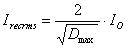 流过输出整流器的有效值电流与峰值值电流的关系: