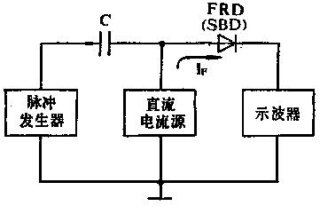 测量电路如图3。由直流电流源供规定的IF,脉冲发生器经过隔直电容器C加脉冲信号,利用电子示波器观察到的trr值,即是从I=0的时刻到IR=Irr时刻所经历的时间。