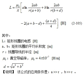 【说明】上式是用来计算变压器线圈电感的计算公式。由于变压器铁芯的磁回路基本是封闭的,变压器铁芯的平均导磁率相对来说比较大。铁芯的导磁率一般在产品技术手册中都会给出,但由于大多数开关电源变压器的铁芯都留有气隙,留有气隙的磁回路会出现磁场强度以及磁感应强度分布不均匀,因此,(2-108)式中的导磁率只能使用平均导磁率,技术手册中的数据不能直接使用。