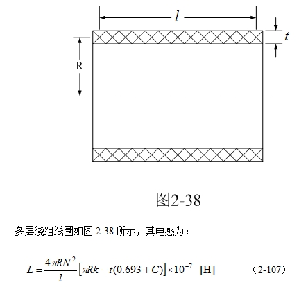 【说明】 上式用来计算空心线圈的电感,μ=μ0 ,计算结果比较准确。当线圈内部有磁芯时,磁芯的导磁率最好选用相对导磁率μr ,μr=μ/μ0 , μ为磁芯的导磁率,即:有磁芯线圈的电感是空心线圈电感的μr 倍, μr可通过实际测量来决定,只需把有磁芯的线圈和空心线圈分别进行对比测试,即可求得μr 。但由于磁芯的导磁率会随电流变化而变化,所以很难决定其准确值。这个公式是从单层线圈推导出来的,但对多层线圈也可以近似地适用。