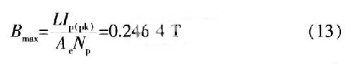 验证最大磁感应强度是否是超过磁芯的允许值: