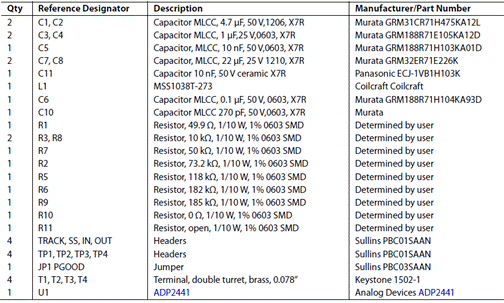 The ADP2441 evaluation board is a complete, dc-to-dc switch-ing regulator design based on the ADP2441, a configurable, 1 A, synchronous step-down, dc-to-dc regulator.