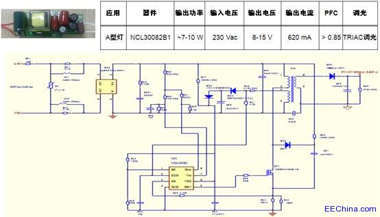 1) 基于NCL30082B1的初级端反馈、高功率因数、TRIAC可调光A型灯LED驱动器设计