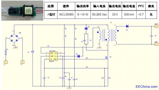 2) 基于NCL30080的初级端反馈、反激拓扑结构A型灯LED驱动器设计