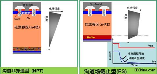 图1:沟道非穿通型和沟道场截止型IGBT对比