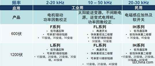 安森美半导体提供完善的IGBT产品系列,可以根据频率、应用和电压进行分类 (表1),不同产品有不同的特性和应用范围。