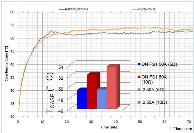 安森美半导体的客户已成功使用其场截止型第一代IGBTNGTB50N60FLWG开发出了各种应用,如功率10 千伏安、功率因数0.9的不间断电源,以及采用半桥谐振拓扑结构的1450瓦厨用电炉。客户认为,安森美半导体场截止型第一代IGBT的性能达到了市场上最好的性能;其IGBT在电磁炉上的温升低于其它2款IGBT。