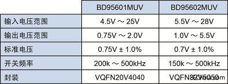 表1:BD95601MUV(1ch)、BD95602MUV(2ch)的规格概要