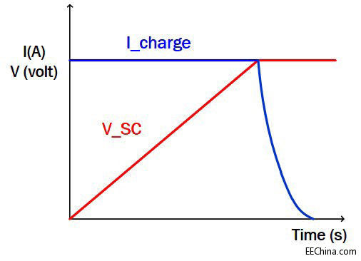 为超级电容充电有许多方法。恒定电流/恒定电压(CICV)是常用的首选方法,如图2(CIVE曲线)所示。在充电周期开始时,充电器件(SW1)在恒定电流模式下工作,向超级电容提供恒定电流,使得其电压呈线性增加。在超级电容充电至目标电压时,恒定电压回路激活并准确地控制超级电容充电电平,使之保持恒定,以避免过度充电。同样,该优先解决方案也提出了对电源管理功能的要求,需要在设计中加以考虑。