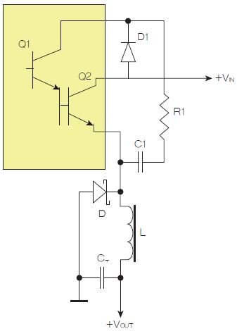 低电流开关稳压器IC通常使用达灵顿管作为输出开关。在这种情况下,电源转换效率可以借由两个便宜的元器件得到提高。
