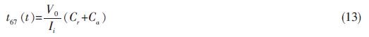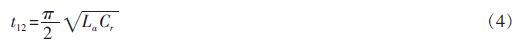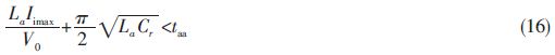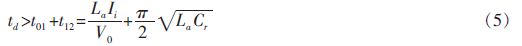 当Cr的电压下降到0 时,Q1的反并联二极管DQ1导通,将Q1的电压钳位在零,此时辅助电感电流ILa(t2)=Ii+Vo/Za。该模态持续的时间为: