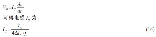 其中ΔiL表示电感电流纹波, 取15%的电感电流纹波, 则ΔiL=2.25A,将ΔiL代入式(14),可以算出Lf=2mH,实际取2mH。
