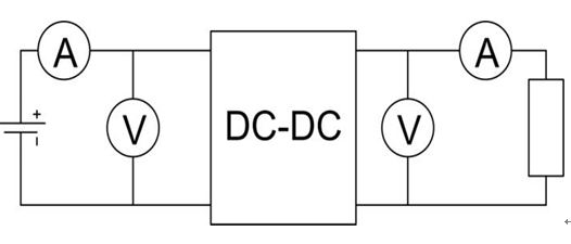 以上分析了不同的负载阻抗与功率特征阻抗下电表的损耗,哪到底选用哪种?需要根据测量对象选择。以测试DC-DC转换器效率为例,需要测量转换器输入功率和输出功率。输入功率即是转换器吸收的功率,应尽量减少电表的损耗,所以需要把损耗小的电表内接,把损耗大的电表功率排除。输出功率是转换器提供的功率,电表损耗和负载功率都是由转换器提供,要将电表损耗功率计入转换器输出功率,因此把损耗大的电表进行内接。