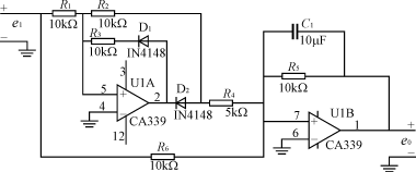 由于涉及到共地的问题,因此,采用了运算放大器的全波精密整流电路,如图7所示。
