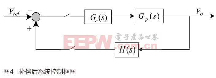 由上面的介绍可知,与数字PWM相关的延时效应可以通过加入ZOH来等效,实际上,采用数字控制器时,还存在另外一种延时效应,即控制算法的计算延时[3],这是由处理器从采样到输出一个新的调制量所需要的计算时间决定的,通常假设该控制延时时间为一个调制周期,即Ts,将此延时加入在模拟控制器设计中,可以通过加入延时环节