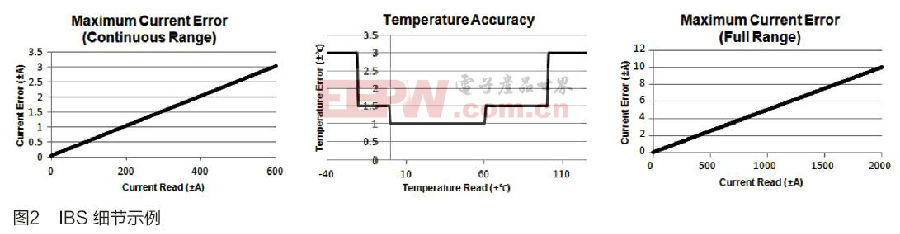 除了电流感测能力之外,IBS 的另一个优点是电池温度传感器和电压传感器全都包含在一个器件中。因此,例如我们假设 IBS 的电压测量精度在 4 V 至 18 V 的电压范围和整个电池工作温度范围内为 ± 50 mV,而电池温度传感器在整个温度范围的外缘处的最大误差为 3℃。铅酸电池的温度范围上限通常为 +60℃,工作中的实际下限不小于 0℃。在这些实际温度范围内,我们的示例 IBS 的温度误差不超过 1℃(参见下文图 2 提供的更多信息)。该精度足以设置关停警告和定义电池在所有工作条件下的电流限值。使所有这些传感器包含于一个器件可消除对额外传感器或用于取回该信息的其他系统的需要,从而帮助避免成本上升。所有测量值以一个数据包通过 LIN 总线返回,确保 IBS 提供对所有电池参数的准确、实时和相关联的测量结果。