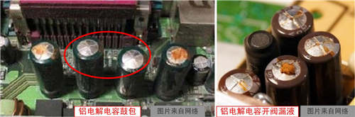 铝电解经长时间在高温环境下存放饭后,电容阳极氧化膜和电解液会发生化学反应,造成耐压下降、漏电流增大。当突然上电,电容电压接近额定电压后,可能引起过压失效或漏电流过大导致过热失效。