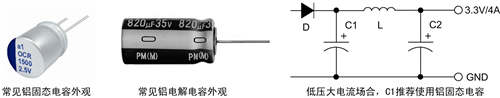 如:在低压大电流输出的应用场合,使用铝固态电容。铝固态电容具有极低的ESR和高纹波电流承受能力,非常适用于低压大电流的整流滤波场合。