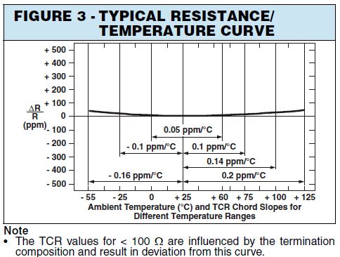 合金特性及其与基片之间的热机平衡力形成的标准温度系数,在0 °C 至 + 60 °C 范围内为 ± 1 ppm/°C (Z 箔为0.05 ppm/°C) (图3)。