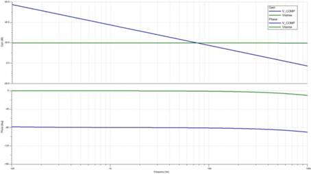 外部补偿组件C6从这个点 (V_COMP) 上接地。需要注意的是,V_COMP也是我们回路仿真的起始点 (VC1)。回路增益是V_COMP引脚上测得的电压除以VC1上的注入扰动。所以,通过将VC1设定为1 Vac信号,回路增益最终就是V_COMP上测得的电压。
