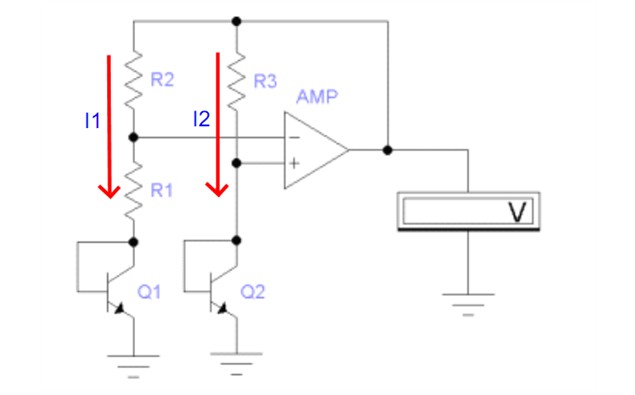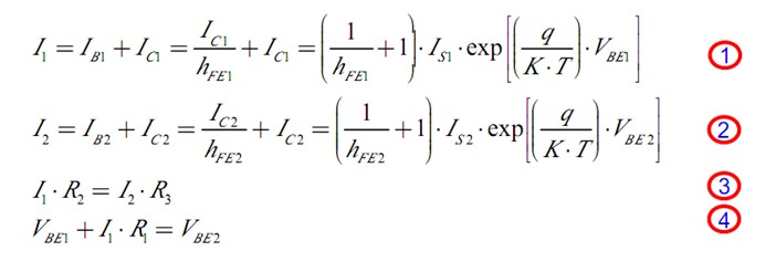 在这里,我们做出本文最重要的一个前提假设:Q1和Q2的反向饱和电流以及hFE是相等的,则