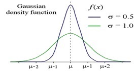 图 2 是围绕零或另一个平均值的参数的长期偏移。蓝色初始分布曲线的 sigma 值是 0.5,而绿色生命周期末期分布曲线的 sigma 值为 1.0。