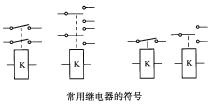 继电器在电路中用一个长方框符号表示。如果继电器有两个线圈,就画两个并列的长方框,同时在长方框内或长方框旁标上继电器的文字符号"K;。继电器的触点有两种表示方法:一种是把它们直接画在长方框一侧,这种表示法较为直观;另一种是按照电路连接的需要,把各个触点分别画到各自的控制电路中,通常在同一继电器的触点与线圈旁分别标注上相同的文字符号,并将触点组编上号码,以示区别。继电器的触点一般有三种基本形式。