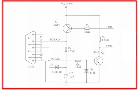 介绍一种电路的应用:分离元器件实现RS232电平和TTL的电平转换,如图: