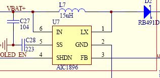 图二 是mp3电路中的屏背灯升压电路,mp3中的屏背景灯一般是由2-3个LED灯管头尾相接串接起来的,一个LED灯管需要3v的直流电压才能够点亮,2个串起来就需要6v电压,3个串起来就要9v电压才能够全部点亮!我们知道mp3里的锂电池最高电压也就是4.2v,正常工作电压只有3.7v,这个电压根本没有办法点亮2个以上串接起来的LED灯管,于是就必须把3.7v的电压升高到6v或者9v来点亮LED灯管!上面这个电路就是这样的升压电路。电路中U7是一个升压集成块,它与L7、C28等组成一个震荡的升高的交流电电压,然后再由D2这个元件(叫二极管,下一讲我们就将讲它的作用)把升高的交流电再变成直流电去点亮LED灯管!所以这里的L7电感是升压谐振电感!