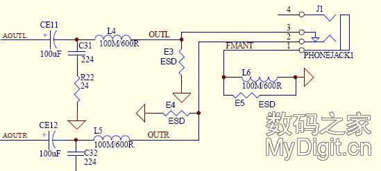 图三是mp3耳机电路有L4、L5、L6三个磁珠电感,其中L4、L5是为了阻挡混在声音中的变化速度快得人耳不能听到的交流成分(叫超声波),让它通过电容C31、C32入地,不再进入耳机让我们感到声音不纯净和疲劳!我们知道,mp3收音机天线是用耳机线做天线的,L6这个磁珠电感的作用就是阻挡耳机线送过来的无线电波信号不能让它进入地只能进入调频收音块的天线接收脚!