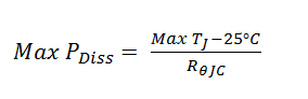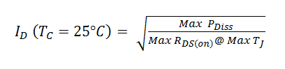 然后是我们考虑的“芯片限值”,通常通过将外壳温度保持在25?C来指定。基本上,这个条件假定了一个理想的散热片,只使用结至外壳热阻来计算器件能够处理的最大功率(在下面的方程式1和2中显示)。换句话说,假定RθCase-to-Ambient为零,这在应用中并不是一个很实用的条件,这样的话,最好将这个电流额定值视为表示器件RDS(ON)和热阻抗的品质因数。