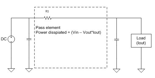 图2. 稳态下简化模式的线性稳压器可以显示功率耗散的位置。