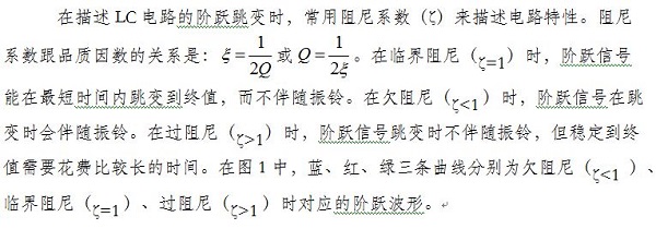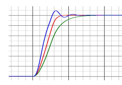 图1:不同阻尼系数对应的阶跃信号(从左至右分别为欠阻尼、临界阻尼、过阻尼时对应的阶跃信号)