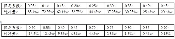表1,不同阻尼系数对应的过冲OS(%)