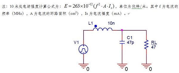 对于振铃,我们直观感受到的是示波器屏幕上的电压的波动。实际带来问题的通常是电路的电流的谐振。在图三所示的电路里面,当PWM开关信号V1在0V和12V切换时,流过电感L1和电容C1的谐振电流可以达到安培量级,如图四所示。在高频(图3所示电路的谐振频率为232MHz,开关电源和ClassD电路里常见的振铃频率在几十兆到几百兆Hz之间),安培量级的电流通过很小的回路,都可能造成辐射超标,使产品无法通过EMC认证。