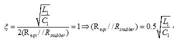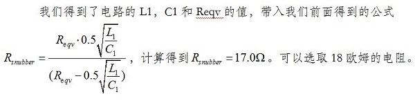 下面给Rsnubber选取合适的电阻值,让PWM开关信号能快速稳定到终值,而又不产生振铃(临界阻尼)。我们以图11的电路为例。其中L1是电路的寄生电感,C1是电路的寄生电容,Reqv是电路的等效并联电阻。