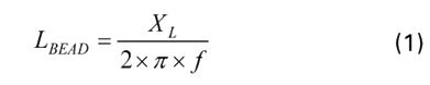 在测得的ZRX 曲线上,磁珠表现出最大感性特性(Z ≈ XL;LBEAD) 的区域中,该磁珠的电感可根据下列公式计算: