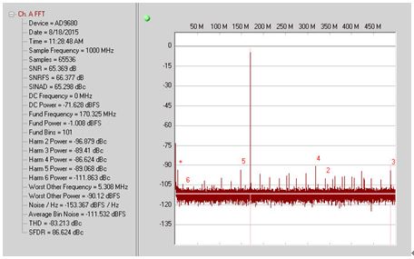 图4. 170 MHz输入时的单音FFT,使用PDN #3。