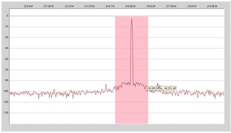 图7. 785 MHz输入时的1.2 MHz 边带开关杂散。杂散水平 = -94 dBFS。