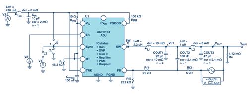 图8. ADP2164 驱动1.25 V 域的ADIsimPE原理图。