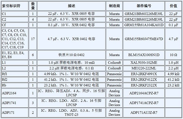 表4 显示了AD9680 评估板使用的简化PDN(如图2 所示)物料 清单。通过使用图3 中的网络,系统设计人员可节省高达40%到 45%的BOM成本。BOM成本是在一个使用广泛的电子元件供应 商网站上通过计算千片订量价格估算的。