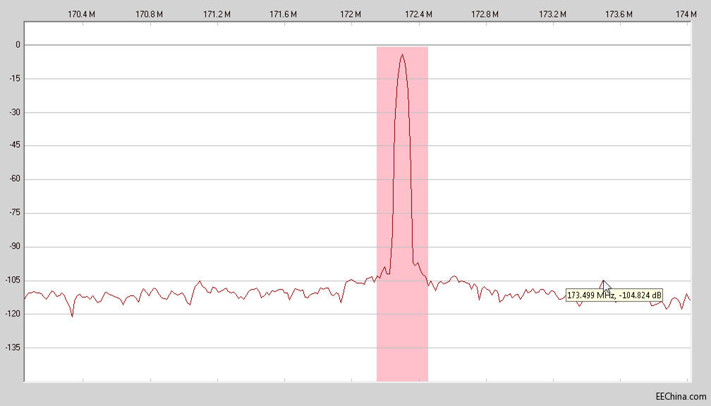 图6. 170 MHz输入时的1.2 MHz 边带开关杂散。