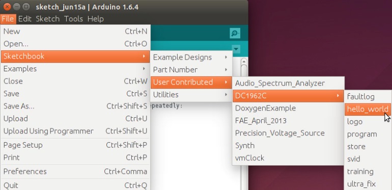 Arduino 工具可在多种平台上的运行。本应用指南的构建和行文采用的是在 64 位 Ubuntu 14 TLS 上运行的 Arduino 1.6.4。