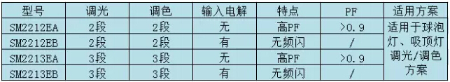 SM2212E系列又包括EA(高PF版本)和EB版本,SM2213E系列又包含EA(高PF版本)和EB版,主要区别见下表格。