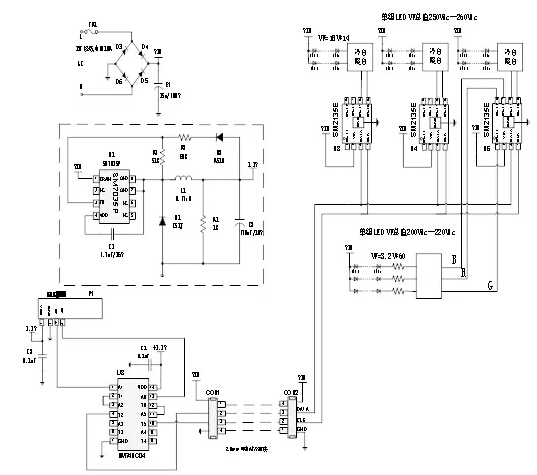 整个系统分为电源板和灯板,原理框图如下: