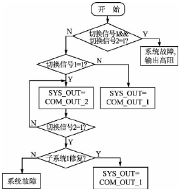 (AUTO_RST_1)?COM_OUT_2:COM_OUT_1);若主机正常工作,则输出取主机的比较输出;若主机故障,在备用单元正常时,则系统切换取备用单元的输出;若主机修复,则切换到主机工作;若两个子系统均故障,则系统故障。实现的流程如图4所示。