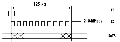PCM数字接口符合G.703标准,通过75Ω同轴电缆或120Ω双绞线进行非对称或对称传输,传输码型为含有定时关系的HDB3码,接收端通过译码可以恢复定时,实现时钟同步,其时序关系如图1所示。Fb为帧同步信号,C2为时钟信号,速率为2.048Mbps,数据在时钟下降沿有效,E1接口具有PCM帧结构,一个复帧包括16个帧,一个帧为125μs,分为32个时隙,其中偶帧的零时隙传输同步信息码0011011,奇帧的零时隙传输对告码,16时隙传输信令信息,其它各时隙传输数据,每个时隙传输8比特数据。本设计采用FPGA编程技术来实现PCM编码原理,线路驱动采用LEVEL ONE公司的LXT30芯片来实现。