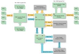 我们的流程加速子系统 (FAST) 采用 Xilinx? Virtex?-class FPGA 来完成为 CloudShield 深度包处理与修改 (CloudShield Deep Packet Processing and Modification) 刀片的包预处理。这些 FPGA 包含 10Gb 以太网 MAC,并为每个端口配备了用于分类及密钥提取的入口处理器 (ingress processor)、用于包修改的出口处理器 (egress processor)、使用四倍数据速率 (QDR) SRAM的包队列、基于赛灵思 Aurora 的消息传输通道以及基于三态内容可寻址存储器 (TCAM) 的搜索引擎。我们的 FPGA 芯片组能够以最少的 CPU 参与来完成包的高速缓存及处理,可实现每秒高达 40Gb 的高性能处理能力。其采用 2 至 7 层字段查询法,能够根据动态可重配置规则在线速条件下以灵活和可确定的方式进行包修改。