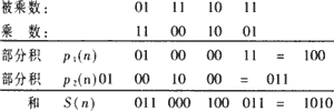 对于无符号数来说,这是一种理想结构。但是在实际使用中,通常使用有符号数且常用补码的形式,因此需要对这种结构进行改进。一种改进方法是将输入的数据分开,即最高的几位作为有符号数处理,其它作为无符号数处理。第二种改进方法是将有符号数经过补码/原码变换器变换成原码,然后,将原码作为无符号数处理,通过有符号数的符号位来控制加法器的加减。第三种改进方法是一种优化方法,即采用三个二进制补码变换器,处理输入的有符号数和滤波器的系数,这样可以避免使用有符号数的乘法和加法运算。具体的乘法累加器运算过程及结果如图3所示。其中,对应乘数高位和低位的部分积p1(n)和p2(n)可以分别先垂直相加后水平相加,或者先水平相加后垂直相加,最后的结果是一样的。若采用后种方法,由于FIR滤波器的h(n)均为常数,得到部分积的矢量乘法运算就演变成了查表法,其中,S1(n)表示S(n)的最低有效,p1表示最低有效位部分积之和。