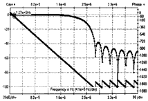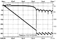 图6是一个采用等波动设计方法生成的均方根升余弦(RRC)FIR滤波器的频域特性。其中,滚降系数为0.35,输入数据率是2.048MHz。